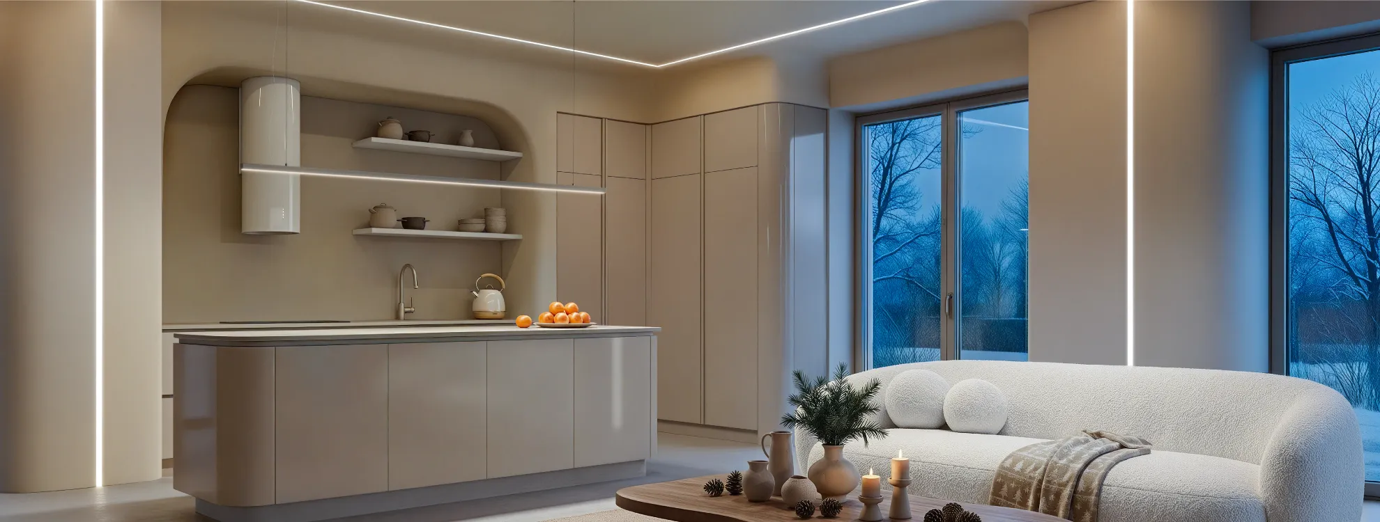 Серия профилей с шириной световой линии 23,5 мм и различными вариантам монтажа.