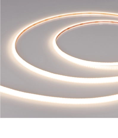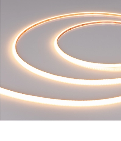 Ширина всего 3 мм позволяет монтировать ленту в самые узкие ниши, мебельные фасады и сложные изогнутые конструкции. Минимальный шаг резки 25 мм дает возможность точно подогнать длину под геометрию объекта.
