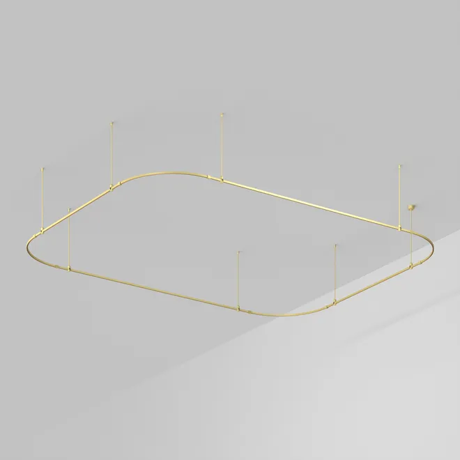 Подвесная конструкция APRIORI, форма закруглённый прямоугольник. В комплекте треки с аксессуарами и жесткими подвесами длиной 800мм. DC48V. Материал алюминий, цвет светлое золото. Размер ДxШxВ: 4500x3500x22мм. Светильники и источники питания приобретаются отдельно.