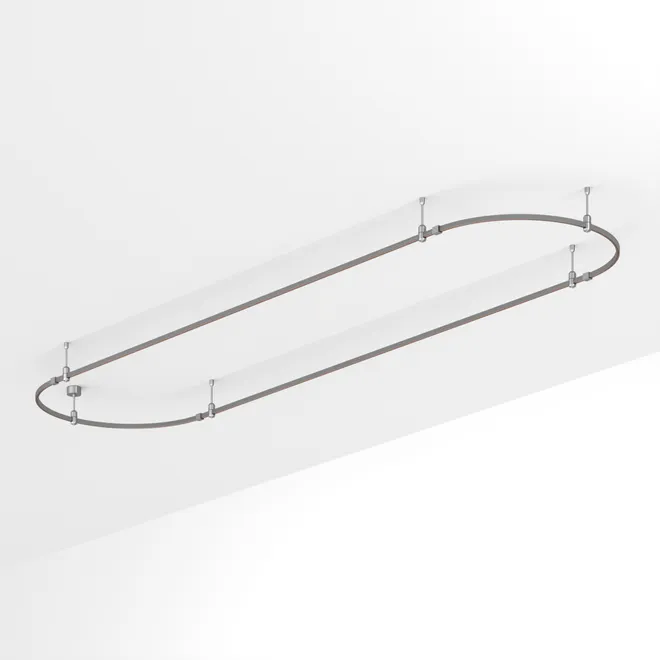 Подвесная конструкция APRIORI, форма овал. В комплекте треки с аксессуарами и жесткими подвесами длиной 200мм. DC48V. Материал алюминий, цвет титан. Размер ДxШxВ: 4000x1000x22мм. Светильники и источники питания приобретаются отдельно.