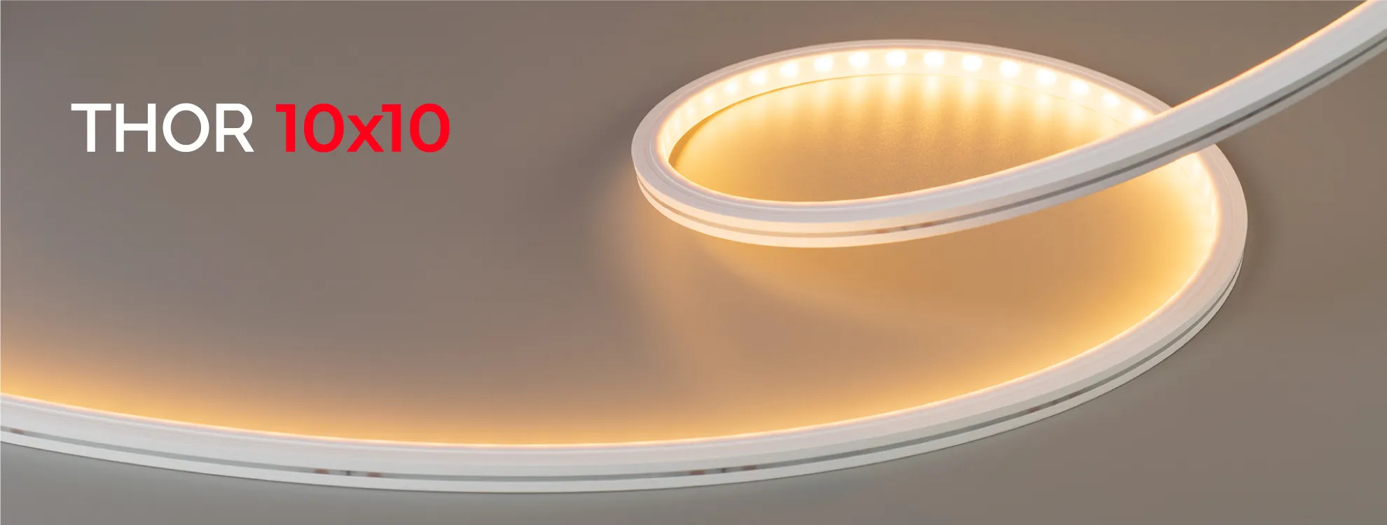 Грейзеры THOR — новая эра в фасадном освещении. Изделия представляют собой светодиоды в герметичной прозрачной оболочке из силикона. Благодаря узкому углу излучения (35°) и линзованной оптике грейзеры создают плотный направленный световой поток, который контрастно подсвечивает фасад здания.