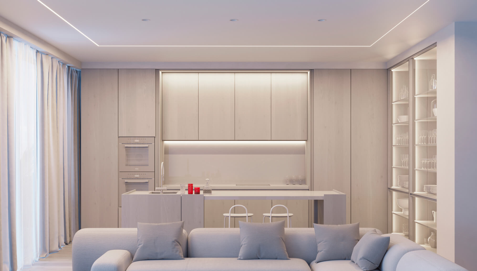 С профилями LINIA FANTOM получится создать декоративные и функциональные линии света, встроенные в поверхность.